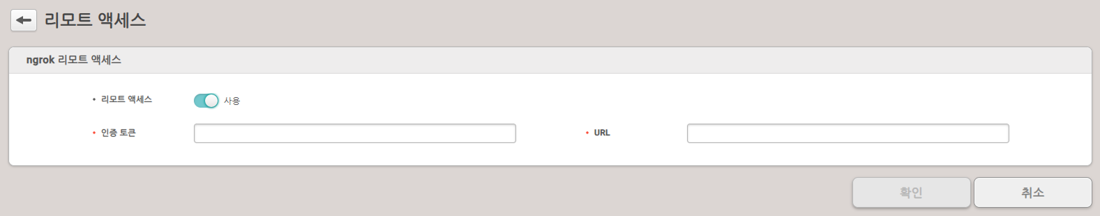 리모트 액세스(Remote Access) 기능은 제3자 서비스인 ngrok의 터널링 서비스를 통해 제공됩니다. 기능 사용 전 반드시 Remote Access 기능 사용 동의 약관을 확인하세요.