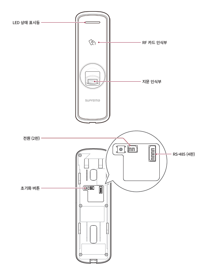 RF 카드 인식부: 출입을 위해 RF 카드를 인식시키는 부분입니다.