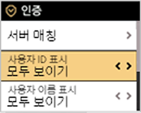 사용자 ID 표시: 장치의 인증 결과 화면에서 사용자 ID가 표시되는 방법을 선택할 수 있습니다.