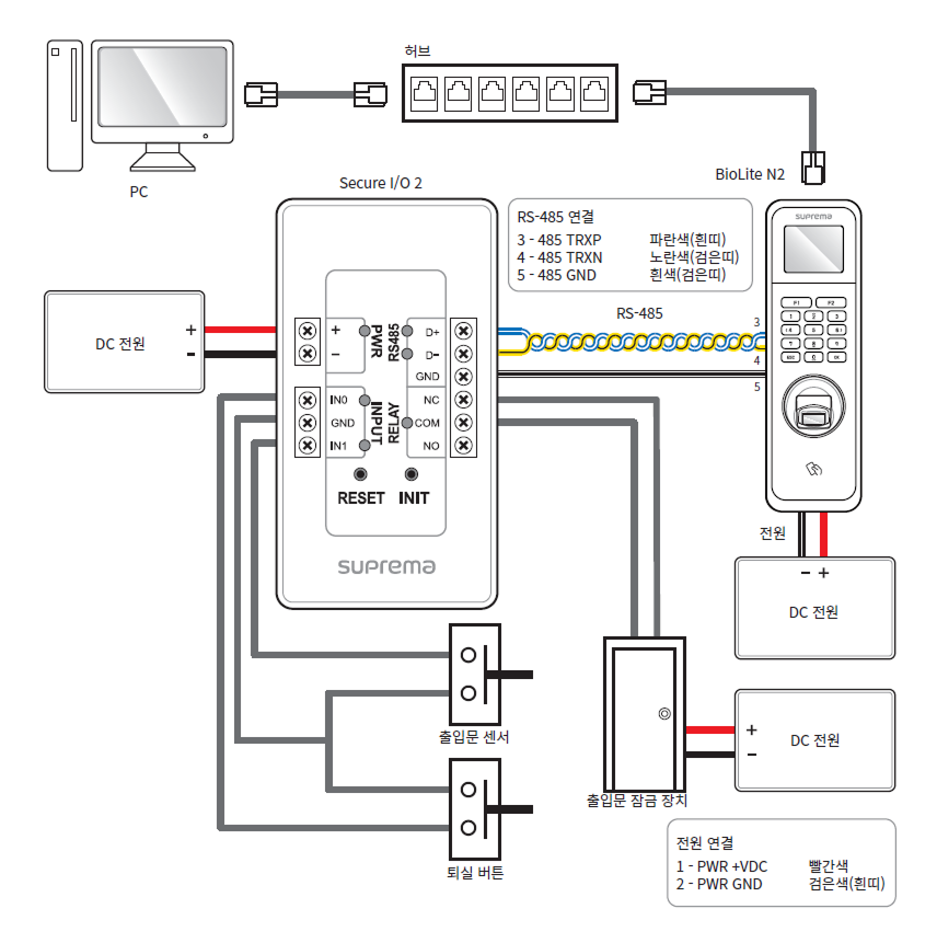 - Secure I/O 2, 전기정(전기식 잠금장치), 제품은 반드시 개별 전원을 사용하세요. 전원을 함께 연결하여 사용하면 장치가 오작동할 수 있습니다.