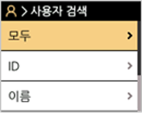 사용할 검색 조건을 선택하세요. 모두, ID, 이름, 지문, 카드로 사용자를 검색할 수 있습니다.