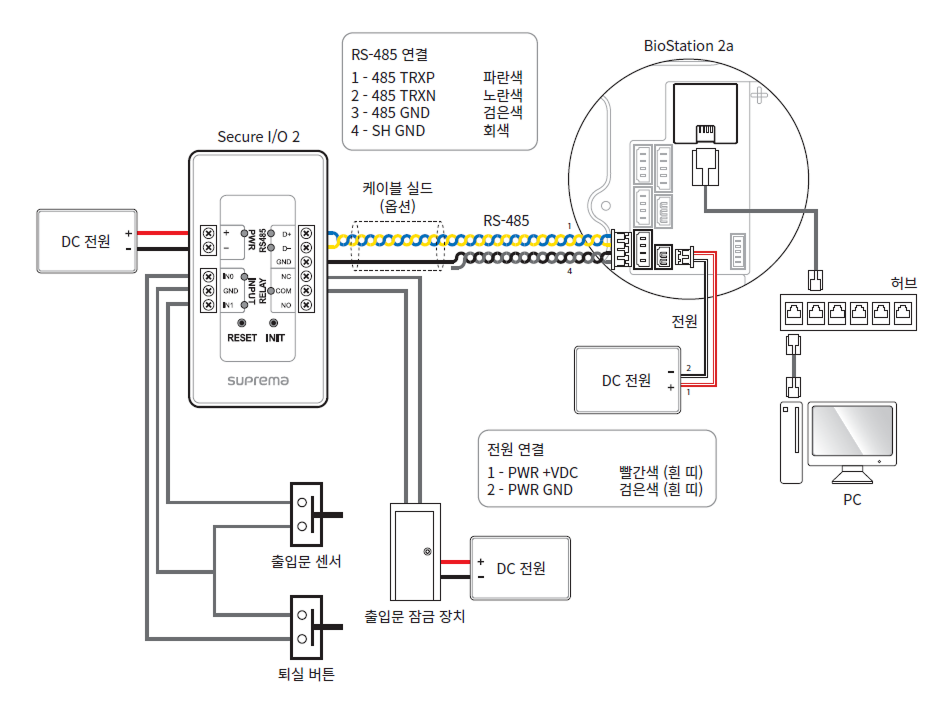 - Secure I/O 2, 전기정(전기식 잠금장치), 제품은 반드시 개별 전원을 사용하세요. 전원을 함께 연결하여 사용하면 장치가 오작동할 수 있습니다.
