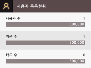 등록된 사용자, 지문, 카드 수를 한 눈에 볼 수 있습니다.
