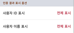 인증을 누른 뒤 인증 결과 표시 옵션에서 원하는 항목을 변경하세요.