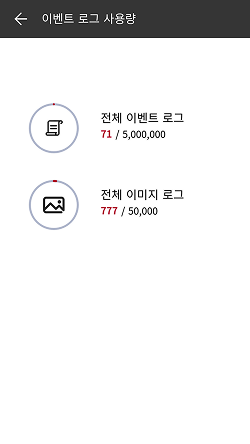 2. 대시보드에서 을 누르세요. 장치의 이벤트 로그 및 이미지 로그 사용량을 확인할 수 있습니다.