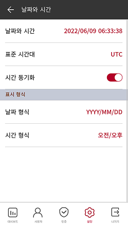 날짜와 시간을 설정할 수 있습니다. 정확한 로그 데이터 수집을 위해 알맞게 설정하세요.