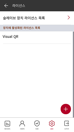 장치 라이선스를 활성화하거나 슬레이브 장치 라이선스 목록과 장치에 활성화된 라이선스 목록을 확인할 수 있습니다.