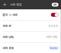 장치 → 서버: 장치에서 입력한 정보를 가진 서버로 직접 연결 신호를 보낼 수 있습니다. 장치 → 서버 설정을 켜면 서버 IP, 서버 URL, 서버 포트를 사용자가 입력할 수 있습니다.