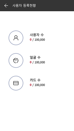 등록된 사용자, 얼굴, 카드 수를 한 눈에 볼 수 있습니다.