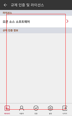 를 터치하면 규제 인증 및 라이선스를 확인할 수 있습니다.
