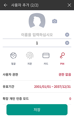 생체 인증 정보를 포함한 사용자 정보를 등록할 수 있습니다.