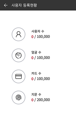 등록된 사용자, 얼굴, 카드, 지문 수를 한 눈에 볼 수 있습니다.
