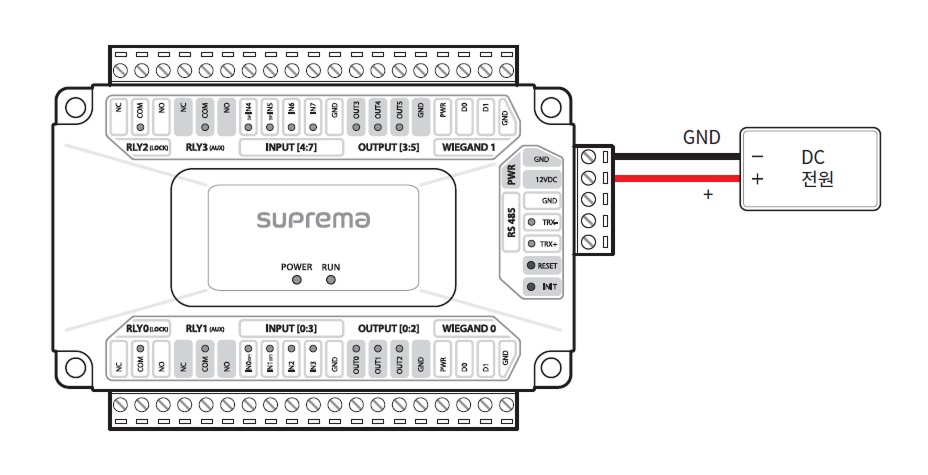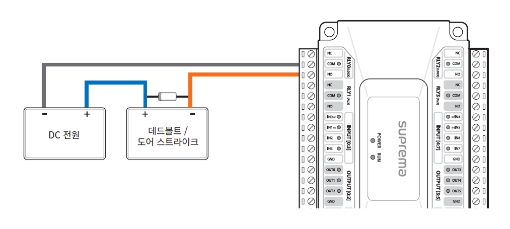 - 출입 통제 장치와 제품에 연결하는 전원은 반드시 분리하여 사용하세요.