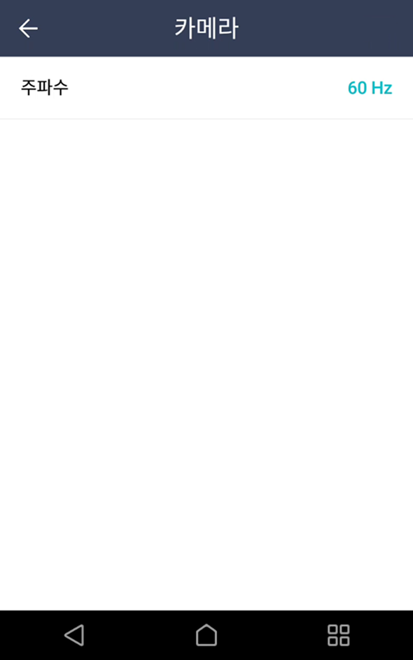 - 주파수: 장치가 설치된 조도 환경에 따라 영상이 깜빡이지 않도록 주파수를 50 Hz 또는 60 Hz로 설정할 수 있습니다.