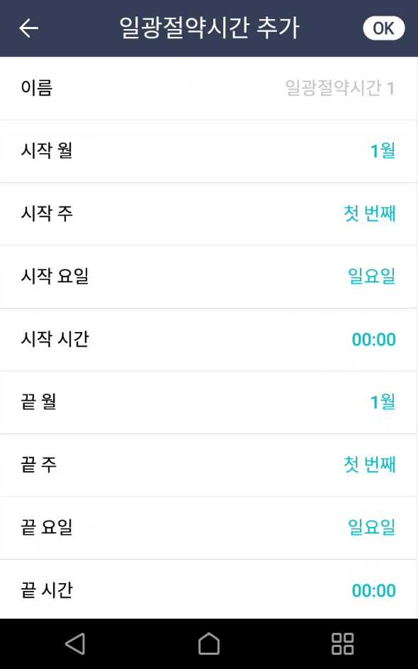 시작 월 / 시작 주 / 시작 요일 / 시작 시간: 일광 절약 시간 적용을 시작할 월, 주, 요일, 시간을 설정하세요.
