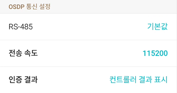 OSDP 통신 설정에서 원하는 항목을 설정하세요.