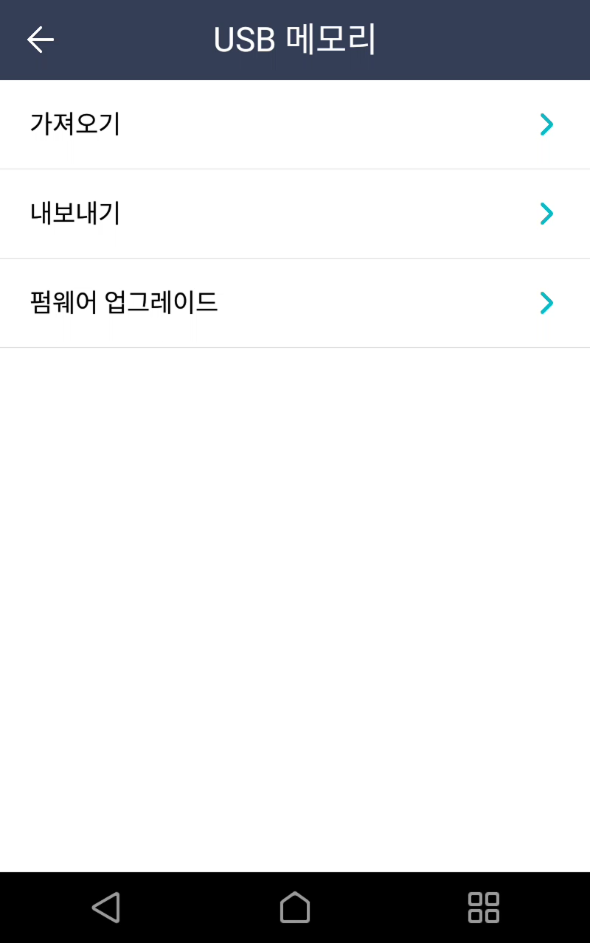 펌웨어 업그레이드: 연결된 USB 메모리에 펌웨어 파일이 저장되어 있다면 펌웨어를 업그레이드할 수 있습니다.