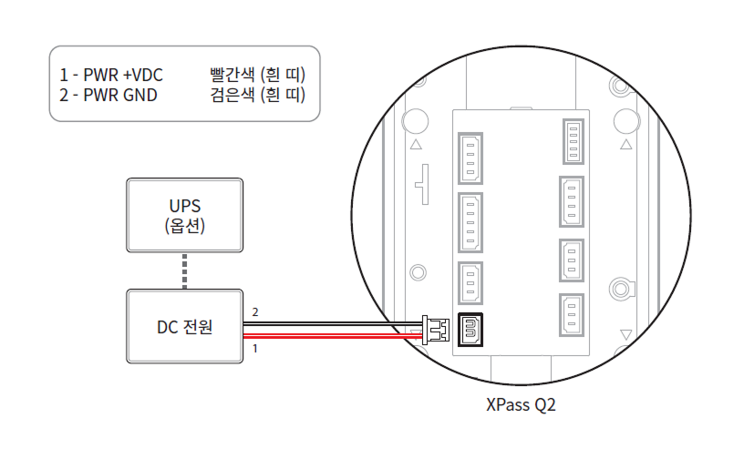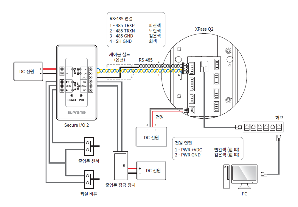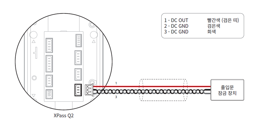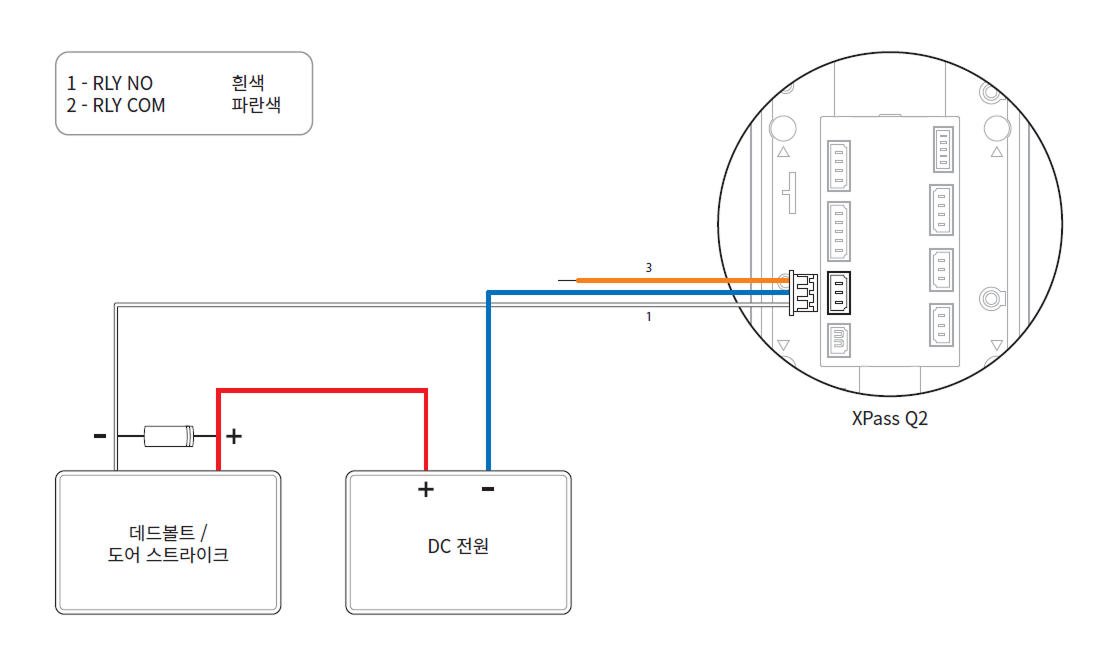 - Secure I/O 2, 전기정(전기식 잠금장치), 제품은 반드시 개별 전원을 사용하세요. 전원을 함께 연결하여 사용하면 장치가 오작동할 수 있습니다.