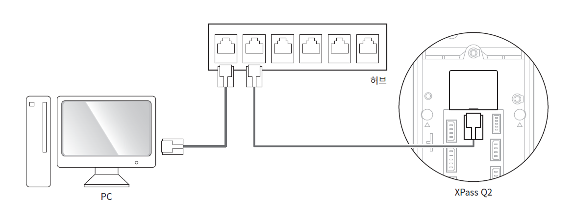 일반 타입의 CAT-5e 케이블을 사용하여 허브와 연결할 수 있습니다.