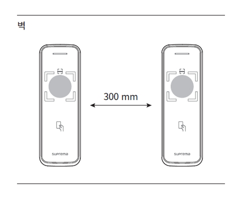 - 모바일 출입카드를 사용할 경우 BLE 신호 간섭을 피하기 위해 장치 사이에 최소 1 m 이상의 거리를 두고 설치하세요.