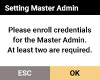 After enrolling two or more types of credentials, press OK to complete Master Admin enrollment.