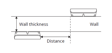 Wall thickness Distance 100 mm 200 mm 120 mm 180 mm 150 mm 150 mm