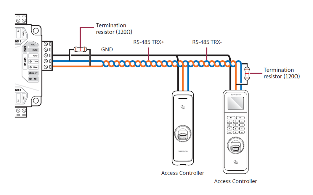Use an AWG24 twisted pair with a maximum length of 1.2 km for the RS-485 cable.