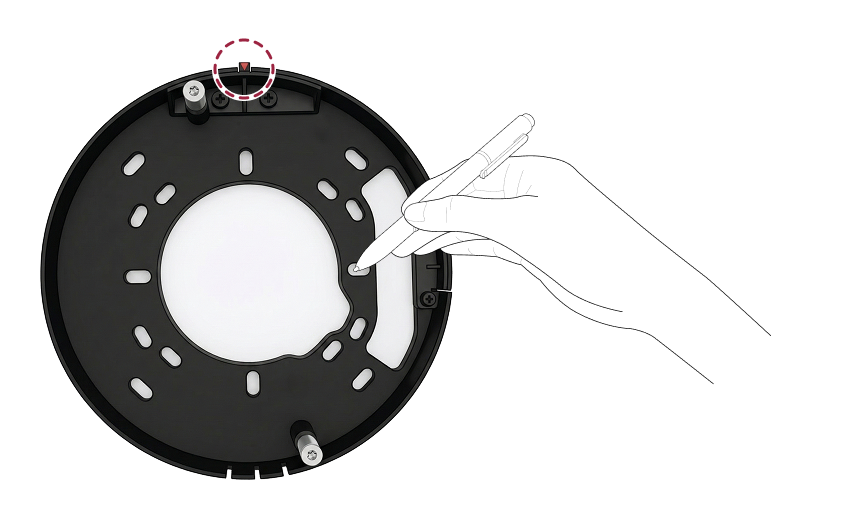 InfoWhen installing on a wall rather than a ceiling, orient the mount plate so the red triangle points to 12 o'clock (north).