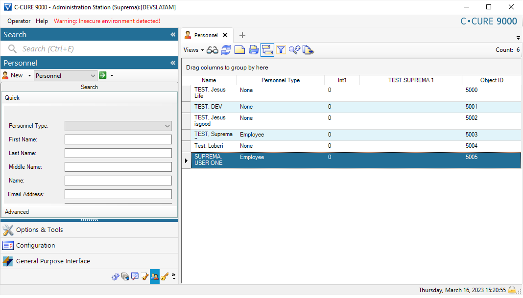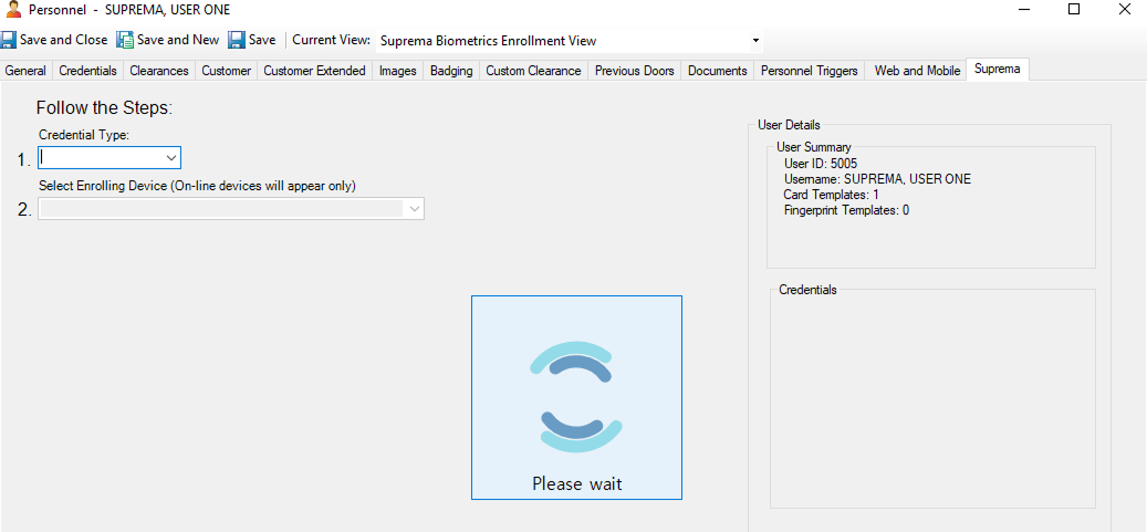 Once you are in the Personnel View, please make sure you are in the Suprema Biometrics Enrollment View as shown below.