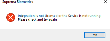 In the first run or when a license is not properly validated or the Suprema - C•CURE Integration Service is not running, you will visualize.