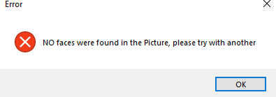 Please make sure the picture you select has a face, otherwise the process will not continue, and the following message will display:
