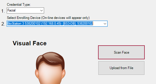 Once you select a capable device, the Scan Face button will enable allow you to scan your face from it.