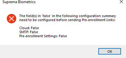 If the Yes option was clicked, the Integration will run one more check before sending the Pre-enrollment link, and this is to validate all required settings to accomplish this feature.