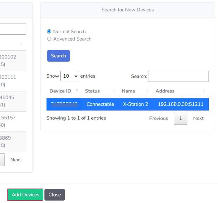 Similarly, as the previous case with the Normal Search, once you select at least one device the Add Devices button will enable and let you perform the action.