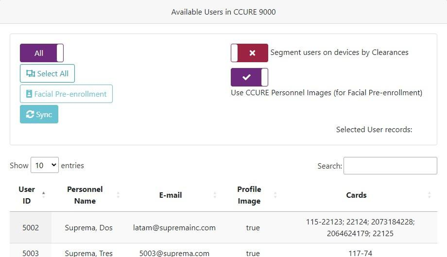 You can use this Feature to batch sync All users from CCURE 9000 into Suprema Devices, once you click the menu you will see the following: