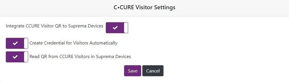 This menu enables you to use the C•CURE Visitor QR as a Access Control credential, that is, when you create a visitor user from C•CURE Portal and send the visitor QR to each visit you are planning to host in your facility this Integration will take care of generating the proper credentials with the exact validity as you selected in the visit period.