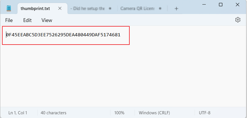 C:\Program Files\Suprema Integration with Gallagher\Prerequisites, open the thumbprint file, and copy the value of the thumbprint inside it.InfoIf the thumbprint file is missing. If thumbprint is not generated while running the EXE file.