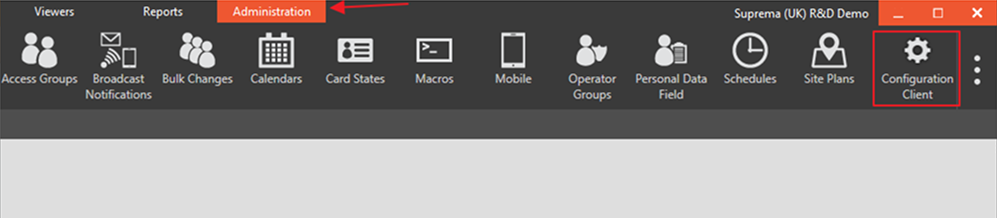 Now, go to Administration from the top left corner and select Configuration Client, the window will be open.