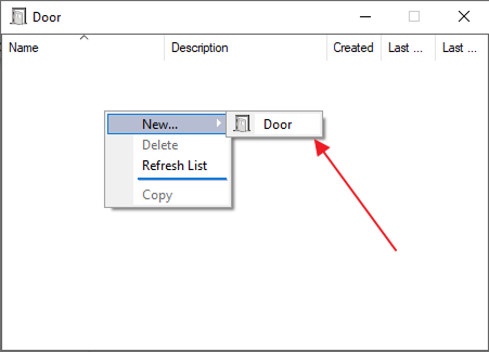 To Create Door go to Configure, Door then press right-click and create a new door.
