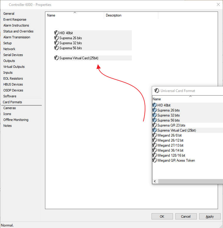 Drag all six card types and drop them on Controller properties, Card Format Setting, and Apply the settings. Press the OK and Close all the windows of Gallagher Configuration Client.
