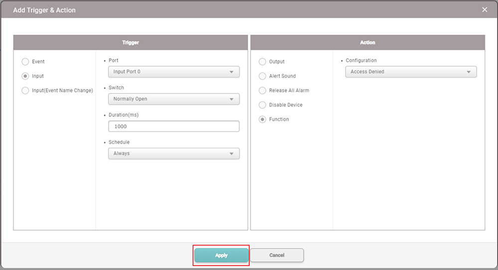 Now go to Event Response and select Alarm Zone for all events and select System Alarm Zone. And press the Apply button.