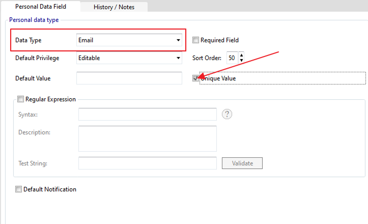Now inside the pop-up set the name as Email and press the Close button. In the Data Type field select Email as a Data Type and Tick the Unique Value checkbox. Don’t change anything here and assign Access Group by pressing on the Add Access Group button inside the Access Group section and selecting Suprema Access Zone After selecting Access Zone press the Add Selection button for the field.