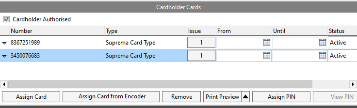 Now to assign the smart card you need to assign a card from the encoder from the Gallagher inside cardholder cards tab.
