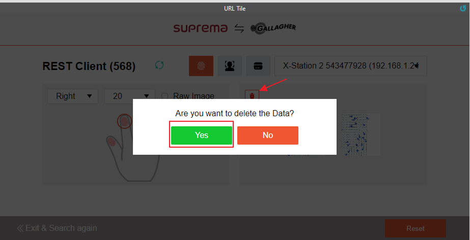 To delete the single fingerprint press the delete button and the pop-up will appear then press the Yes button, It will delete that particular fingerprint.