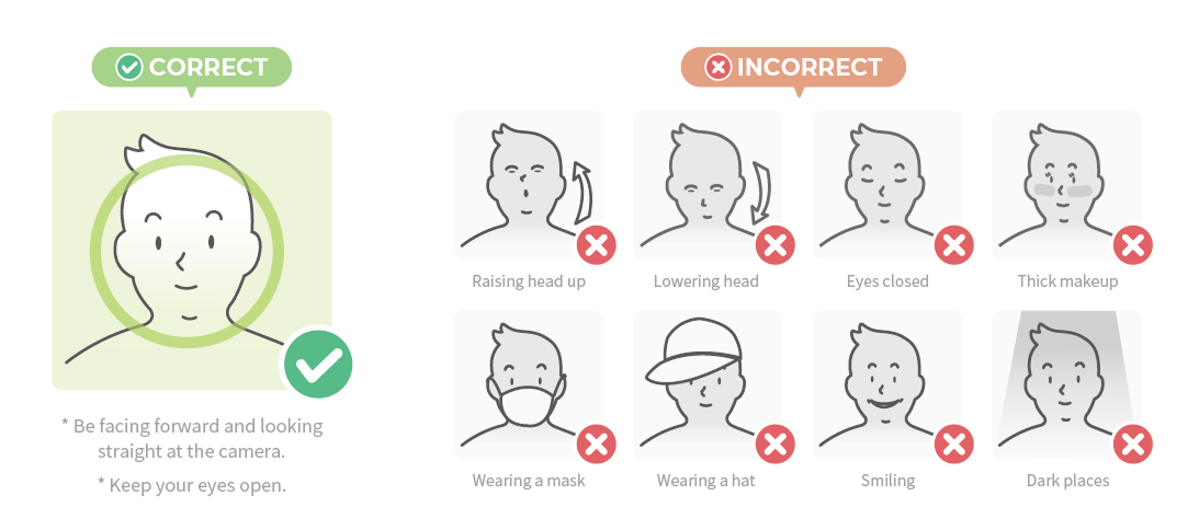 When enrolling your face for authentication, refer to the picture below to enroll your face correctly.