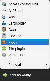 Click Add an entity under Plugins screen, then select Plugin from the list.