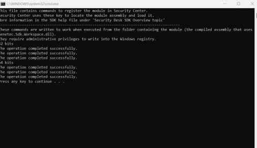 Once the installation is complete, a command prompt window will appear. Press any key to close the window.