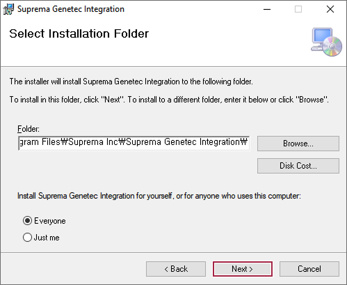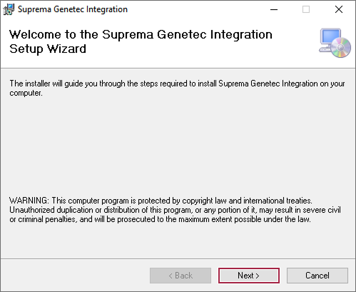 In Select plugin type, select Suprema Device Plugin and click Next.