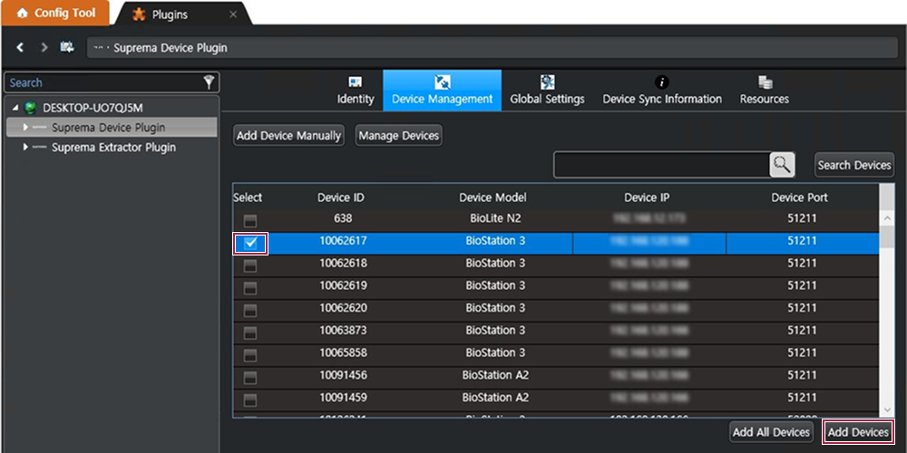 Click the Suprema Device Plugin.