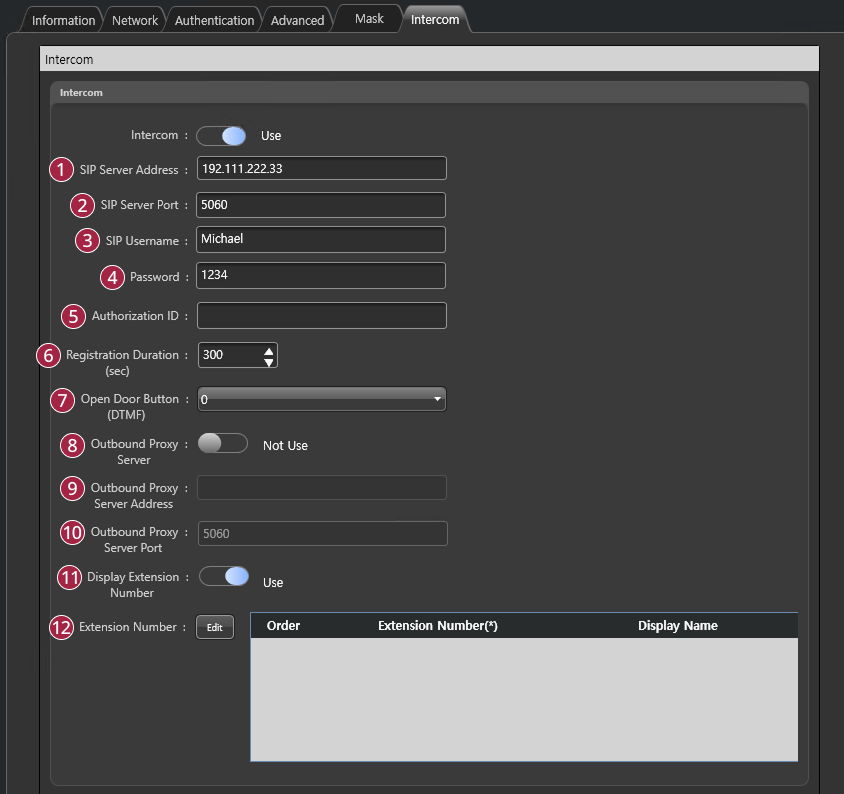 | Extension Number | Register extension numbers up to 128. Click Edit to add or delete. - Add: Add an extension number. - Delete: Delete an extension number. |